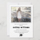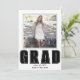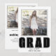 Elegante FORMANDO Classe de 2024 convite para fotos de graduação. A design exude sofisticação, com a exibição ousada e proeminente de "FORMANDO" na tipografia negra contra um pano de fundo branco limpo. O nome do formando e uma foto cuidadosamente capturada adornam a frente, lindamente contrastando com o branco. Sacudir atrás para outra foto e sala para adicionar seu próprio texto personalizado.