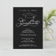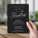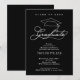 Um boné de formatura e a palavra "formando" em um roteiro elegante e branco PLUS o nome e o ano do seu formando e suas informações sobre esses convites de festa de formatura preta. CONSULTE TODA A RECOLHA de cores pré-feitas, placas de papel, guardanapos, tampas de bonés de formando e muito mais em nossa loja.