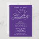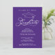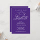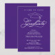 Um boné de formatura e a palavra "formando" em um roteiro elegante e branco, MAIS o nome e o ano do seu formando e suas informações sobre esses convites para festas de formatura roxas. CONSULTE TODA A RECOLHA de cores pré-feitas, placas de papel, guardanapos, tampas de bonés de formando e muito mais em nossa loja.