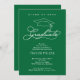 Um boné de formatura e a palavra "formando" em um roteiro elegante e branco PLUS o nome e o ano do seu formando e suas informações sobre esses convites de festa de formatura verde. CONSULTE TODA A RECOLHA de cores pré-feitas, placas de papel, guardanapos, tampas de bonés de formando e muito mais em nossa loja.