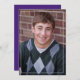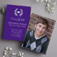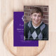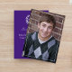 Este design apresenta um formando simples convite e anúncio elegantes, um chapéu de graduação roxo minimalista, louro de louro de classe de tendência, classe de 2023 2024 2025, cor branca roxa mínima, foto de mais velho de graduação, carta de anúncio de convite para a graduação, segundo grau ou faculdade, convite para festa de formando, graduação clássica mínima