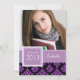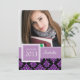 FOTO DE FORMANDO DE DAMASK IMPRESSO POR GIRA MODERNA. Moderno, giro, divertido, bonito, mas sofisticado e elegante, este Convite de festas personalizado de Glitter Damask Class, preto e roxo, de 2013, com sua foto de formando é a forma perfeita de convidar seus convidados para a festa de formatura de sua filha.Nota: Efeito de brilho IMPRESSO. Seja para o seu mais velho segundo grau, formando universitário ou graduação universitária, este convite de festas brilhante será perfeito para ela. Design de Elke Clarke©.