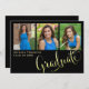 Este design apresenta uma fotografia de formando de graduação de formando, com uma grelha de imagens de colagem multifotografia, uma página de código QR no Facebook URL, uma imagem moderna minimalista elegante, uma letra de escrita de na moda de caligrafia de tendência, com estilo preto-e-ouro escolar, para mais velho de segundo grau ou universitários, um design de tipografia elegante clássico, um roteiro de caligrafia criativa de rico, um formando de convite de festas cartão de de graduação de de de