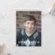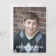 Este design apresenta um cartão de anúncio de fotos de graduação, convite para fotos de formando, com a classe do seu ano de escrita, fonte clássica de tipografia de caligrafia, um na moda moderno de tendências, para uma festa de formando elegante, um começo de segundo grau ou faculdade, um simples azul e ouro de Marinho, convite para mais velho, com uma borda modelo sangramento de cheio