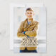 A nítida tipografia moderna aparece neste anúncio de graduação/convite que combina o estilo masculino com linhas limpas contemporâneas. Com o texto curvo "classe de" e o ano de graduação ousado, a inscrição é colocada sobre o fundo da foto vertical do retrato do mais velho do seu filho em uma banda transparente de branco. No verso, todo o texto pode ser personalizado. Use como convite para uma festa de formatura (conforme mostrado) ou altere facilmente o texto para apenas um anúncio.