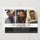 Três finas linhas metálicas de ouro sofisticadas destacam o FORMANDO de título e o ano de graduação, com letra de mão. O bloco preto de cor na frente é editável alterando a cor de fundo para coordenar com as fotos, cores escolares ou cores do tema da festa de formatura. Mostre quatro fotos do mais velho do seu formando (três na frente) e uma na parte traseira, juntamente com os detalhes do convite para festa de formatura. DICA DA FOTO: Para obter resultados mais rápidos/melhores, escolha uma foto com o assunto no meio e/ou pré-plante para uma forma semelhante, conforme mostrado ANTES de carregar, e ela preencherá o espaço de fotos perfeitamente. Entre em contato com o designer se você quiser que este design seja modificado, em outro produto ou quiser coordenar itens para o conjunto de sua parte.