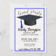O convite para a graduação moderno apresenta um marinho azul no boné de formatura preto e é cortado numa faixa azul marinho com brilho dourado e fundo branco. A parte de trás do convite é branca com brilho de ouro e há detentores de lugar para duas das suas fotos favoritas do formando serem. As fotos são guardadas num quadro azul marinho e há uma faixa azul marinho ao redor da borda. Estes convites de festas são perfeitos para os formandos cujas cores escolares são azuis marinho.