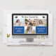 Um convite de festas Formando que é tão apropriado para este ano! Design apresenta um computador/ecrã de zoom preenchido com as fotografias do formando e espaço para o seu texto personalizado. A parte traseira contém detalhes sobre o seu partido - ou sinta-se livre para excluir. Você certamente vai sorrir e rir com este convite/anúncio. (altere facilmente as cores para corresponder às cores da sua escola - basta clicar em personalizar/editar.)