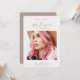 Este convite natural para festa de formatura de fotos apresenta uma bela fonte de script e uma foto frontal, com detalhes da festa e uma segunda foto no verso.