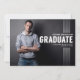 A tipografia grande, ousada e moderna é apresentada neste anúncio/convite de graduação que combina o estilo masculino com linhas limpas contemporâneas. "FORMANDO" e texto de nome/escola modernos são definidos em relação ao fundo da foto de retrato do mais velho do tamanho do cheio do seu filho. No verso, todo o texto pode ser personalizado. Use como convite para uma festa de formatura (conforme mostrado) ou altere facilmente o texto para apenas um anúncio. Perfeito para um retrato horizontal de mais velho deslocado onde o assunto está à esquerda.