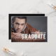 A tipografia grande, ousada e moderna é apresentada neste anúncio/convite de graduação que combina o estilo masculino com linhas limpas contemporâneas. O "FORMANDO" e o texto do nome são colocados no fundo da foto do retrato do mais velho do tamanho do cheio do seu filho. No verso, todo o texto pode ser personalizado. Use como convite para uma festa de formatura (conforme mostrado) ou altere facilmente o texto para apenas um anúncio. Perfeito para um retrato horizontal de mais velho deslocado onde o assunto está à esquerda.