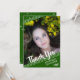 O título do script de pincel manuscrito OBRIGADO e o ano de graduação acendem o nome do seu formando e a foto contra um fundo verde editável. A parte traseira apresenta um padrão de estrelas e um local para pré-imprimir uma mensagem de obrigado- você ou excluir o texto de amostra para deixar o vazio para mensagens manuscritas pessoais. DICA DA FOTO: Para obter resultados mais rápidos/melhores, na frente, escolha uma foto com o assunto no meio de um retângulo horizontal para acomodar a colocação na diagonal. e/ou recorte-a em uma forma de retângulo largo ANTES de carregar e preencherá perfeitamente o espaço de fotos. Entre em contato com o designer por meio do Zazzle Chat ou makeitaboutyoustore@gmail.com se você quiser que este design seja modificado, em outro produto ou quiser coordenar itens.
