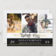 Três finas linhas metálicas de ouro sotaque o título escrito à mão OBRIGADO A VOCÊ, o nome do formando, a escola e o ano de graduação. O bloco preto de cor na frente é editável alterando a cor de fundo para coordenar com as fotos, cores escolares ou cores do tema da festa de formatura. Mostre quatro fotos do seu formando (três na frente) e uma na parte traseira, juntamente com a mensagem genérica pré-impressa - você ou exclua o texto de amostra para deixar o vazio para escrever manualmente uma mensagem pessoal. DICA DA FOTO: Para obter resultados mais rápidos/melhores, escolha uma foto com o assunto no meio e/ou pré-plante para uma forma semelhante, conforme mostrado ANTES de carregar, e ela preencherá o espaço de fotos perfeitamente. Entre em contato com o designer se você quiser que este design seja modificado, em outro produto ou quiser coordenar itens para o conjunto de sua parte.