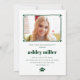 Formando de quadro branco moderno Classe de 2025 convite para fotos de graduação em verde e branco. Anuncie a realização do seu formando da Classe 2025 com este convite minimalista e personalizado. Apresentando um quadro branco e verde desenhado à mão com detalhes cardíacos, a frente mostra a foto do formando e o nome em letras verdes em negrito. O verso proporciona espaço para uma segunda foto, querida, junto com todas as informações essenciais sobre a festa de formatura. "FORMANDO" é exibido na tipografia decorativa para elegantemente destacar a ocasião especial.