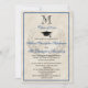 Azul com design de fundo do padrão de creme de mármore. A letra inicial do solteiro monograma clássico (sua escolha do nome ou sobrenome) é inteligente e atraente para a faculdade masculina ou feminina, escola profissional ou qualquer formando de nível. Este anúncio de graduação em estilo clássico, barato e barato, ou o convite de formatura em estilo clássico, é perfeito para formandos universitários ou formandos, para uma casa aberta, uma recepção casual de almoço ou uma festa formal. Celebrar a conquista monumental de um solteiro, de seus associados, mestrados ou doutorado. O clássico design apresenta um sutil emblema de coroa de louros, monograma personalizado, junto com um escrevendo elegante de script. Muito fácil de personalizar com suas informações. Escolha a sua cor escolhendo "personalizar mais" e alterando as cores do texto e do fundo na frente e no verso. Convidam-se para a graduação em estilo clássico formal e tradicional homens ou mulheres, raparigas ou rapazes de qualquer idade.