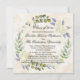 Cartão em forma quadrada com uma bela pintura em flor de aquarela em tons de branco, creme, azul e verde. Excelente para um formando feminino feminino feminino feminino feminino. Este anúncio de graduação em bege creme moderno e elegante / convite de formatura é maravilhoso para formandos de nível universitário. Design pintado clássico com adorável coroa natural de louros e fontes elegantes. Convite para formatura formal para tradicional e clássica.