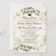 Pintura de flor de aquarela floral e bela em tons de branco, creme, azul e verde. Excelente para um formando feminino feminino feminino feminino feminino. Este anúncio de graduação em bege creme moderno e elegante / convite de formatura é maravilhoso para formandos de nível universitário. Design pintado clássico com adorável coroa natural de louros e fontes elegantes. Convite para formatura formal para tradicional e clássica.