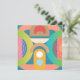 Palavras-chave: convite geométrico moderno, convite de festa de arte abstrata, convite de casamento com design retrô, papelaria de evento colorida, cartão de celebração criativa