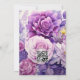 Sombras de convite de casamento floral roxo. O código QR no verso direciona para o seu local de casamento onde o pessoas pode aprender mais e rsvp.