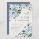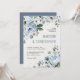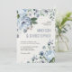 O convite para casamentos no inverno florais elegante apresenta cinzas elegantes e buquê de flor de aquarela azul gelada com vegetação arborizada. Entre em contato comigo para obter ajuda sobre a personalização ou se você precisar de outro produto com este design.