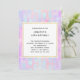 Convite de aniversário com um padrão de fundo abstrato. As aquarelas roxas e azuis cor-de-rosa formam este design artístico que apresenta formas retangulares verticais sobre um fundo malhado.