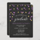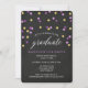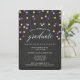 Celebrar o formando com convites para festas de formatura de confete chic, roxo e dourado. Os convites à festa de formatura, belos e modernos, apresentam um fundo de quadro negro, pontos roxos e um confete de brilho dourado. Verifique os produtos correspondentes e outras opções de cor na loja de Designs codificados.