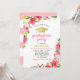 Celebre o seu formando com convites de festas de luau de graduação na moda com boné de formatura de folha de ouro falso com uma fina camada de frondes verdes de palmeiras e bonito flores de hibisco tropical em tons de rosa quente, amarelo-sol, verde e branco. O texto moderno com cor magenta rosa, dourada e preta pode ser totalmente personalizado para o seu evento especial. Um buquê floral personalizado com o padrão de listras de cabana cor-de-rosa e o texto personalizado "Você é Convidado!" acentua a parte traseira do cartão.