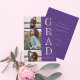 Compartilhe a alegria de um segundo grau ou formandos com este convite personalizado de 3 colagens de fotos, roxo e lançamento de graduação em ouro.