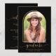 Convite para apresentação da Festa de formatura de fotos Dourada e Preta Minimalista do Arch Boho com sua foto e nossa impressionante tipografia de fotos e arco geométrico em preto clássico e amarelo-açafrão. Perfeito para anunciar sua formatura e festa! Entre em contato conosco em cedarandstring@gmail.com se precisar de assistência com o design ou produtos correspondentes.