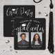 É uma festa de formatura dupla! Anuncie a conquista de dois formandos e convide a família e os amigos a celebrarem com convites para fotos na praça de festa de formatura comum. Todas as imagens e textos são simples de personalizar, e as cores podem ser personalizadas usando a ferramenta design Zazzle. (DICA DE IMAGEM: Uma maneira fácil de posicionar uma foto exatamente como você deseja é recortá-la antes de carregá-la no site do Zazzle.) Este modelo é uma placa de lançamento combinada na parte frontal com o convite de festas formando na parte traseira. O design moderno preto e branco apresenta uma caligrafia de script de estilo manuscrito com um boné de conselho de argamassa, uma elegante tipografia clássica e duas fotos de sua escolha, como fotos de mais velho ou imagens da cerimônia de início. Este convite de formatura é uma forma na moda para anunciar uma celebração especial para dois formandos, como irmãos, melhores amigos, primos, gêmeos, irmão e irmã, etc. Parabéns para ambos os formandos!