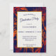 Floral Azul Laranja Marinho personalizável com Convite Dourado para Graduação de Quadros.