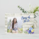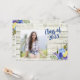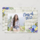 Fundo de conselho de madeira, russo, branco, com modelo fotográfico, "Classe de 2019", e buquê floral azul, roxo e amarelo no canto inferior direito. modelos convites de festas atrás com o mesmo fundo de madeira e flores.