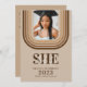Apresentando o convite perfeito para qualquer festa de formatura! Este moderno convite à festa de formatura retromarrom apresenta um design clássico e uma paleta de cores neutras que certamente corresponde a todos os temas de festa de formatura. O design tem dois espaços de fotos, permitindo que você adicione fotos do formando ou quaisquer outras fotos que queira compartilhar com seus convidados. Este design único e na moda é perfeito para celebrar qualquer formando especial, e é certo que faz da sua festa de formatura uma noite para se lembrar.