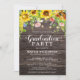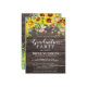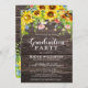 Flores de água vibrantes, a cores do sol em madeira de celeiro rústico com luzes de cordas. Sua foto de formando aparece na parte de trás deste convite de festa de formatura rústica cercado por um quadro de lindos girassóis. Perfeito para o formando que procura um convite/anúncio de formatura rústico.