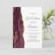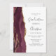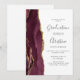 Este convite de festa de formatura de 2026 apresenta uma imagem em aquarela de uma geoda de ágata em tons de borgonha com destaques de brilho dourado falso. A palavra "Graduação" e o primeiro nome do graduado aparecem em elegante escrita à mão em cinza carvão sobre um fundo branco, junto com detalhes da festa em fontes sans serif e itálico. O verso do cartão é branco sólido.