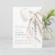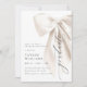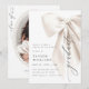 Celebre a conquista do seu graduado com este convite de formatura com laço branco elegante. Com um laço de cetim marfim sofisticado e letras em caligrafia delicada, este design exala classe e refinamento atemporais. O texto personalizável permite que você adicione facilmente o nome do graduado, data e detalhes da festa. Faça desta ocasião especial inesquecível com um toque de luxo.
