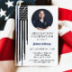 Este convite de festa de formatura exclusivo apresenta uma bandeira da linha azul fina em aquarela desgastada com um design moderno. Este convite pode ser usado para qualquer membro do serviço, pois a cor da bandeira é editável! Adicione facilmente sua própria foto e personalize ao seu gosto!
