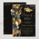 Convites de formatura elegantes com fundo preto sofisticado, brilho dourado cintilante, balões