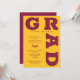 O texto 'GRAD' em letras maiúsculas e vinho curva-se em torno das bordas destes convites de festa de formatura com fundo amarelo dourado. Itens CORRESPONDENTES e mais cores em nossa coleção.