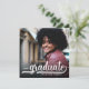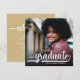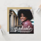 Convites de formatura quadrados apresentam sua foto favorita, a palavra formado, ano da turma e seu nome em letras brancas elegantes na frente e as informações da sua festa de formatura no verso. *DICA: O tamanho quadrado requer porte extra - envie por um envelope de 5" x 7" pelo custo regular. ITENS COINCIDENTES em nossa coleção.