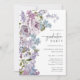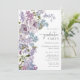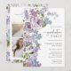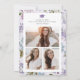 Convite de Formatura Roxo Floral. Marque sua formatura no ensino médio ou faculdade com este convite impressionante, rústico moderno adornado com lilases românticas em aquarela em tons suaves de roxo, rosas lavanda e flores silvestres azuis com folhagem exuberante. Ideal para eventos de primavera e verão, este convite elegante oferece espaço para três de suas fotos favoritas no verso e é totalmente personalizável com texto editável, estilos de fonte, cores e tamanhos para uma celebração memorável.