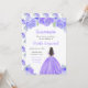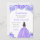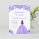 Este convite da Quinceanera apresenta flores florais roxas brilhantes e uma bela princesa de cabelo castanho e um vestido elegante. Isto é perfeito para uma festa de aniversário de Quinceanera.