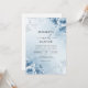 Flores geladas flutuam sobre um fundo azul legal e sujo. Esta design evoca um romance sereno e elegante de inverno. Perfeito para uma celebração sofisticada e legal.