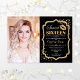 Foto Doce 16 Aniversário. Doce dezesseis convites de aniversário com sua foto. Possui fonte de script, lábios beijam e confetti. Design preto clássico com ouro brilhante falso. Perfeito para uma elegante festa de 16 dias de glama.