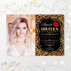 Foto: 16 Aniversário - Convite à Impressão do Leopardo Beijo Vermelho. Doce dezesseis convites de aniversário com sua foto. Possui impressão leopardo, fonte de script, lábios beijam e confetti. Design de tema animal clássico com ouro brilhante falso. Perfeito para uma elegante festa de 16 dias.