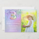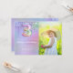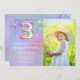Convite de festas fotográfico, aniversário de 3 anos roxo, cor-de-rosa, pinga aniversário de 3 anos convite de festas para uma menina de 3 anos com o moderno script escrevendo e balões de folha de papel divertidos.