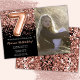 7 de Foto Aniversário Convite Rosa Negro convite de aniversário Glitter Dourado negro elegante e 7 de ouro para uma garota de 7 anos com escrevendo moderno de roteiro e balões de folha divertida.