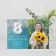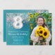 Foto 8º Aniversário do convite Teal e Silver Glitter 8º convite de aniversário para um jovem de 8 anos com escrevendo moderno de roteiro e balões de folha divertida.