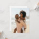 Este convite de casamento apresenta uma cena praiana alegre com dois indivíduos desfrutando de um momento despreocupado à beira-mar. O design exibe uma paleta de cores pastéis suaves, incluindo rosa claro e branco crocante, contra os tons azuis naturais do mar e do céu, criando uma atmosfera serena e vibrante. Capturada em um estilo realista, a composição enfatiza calor e positividade, perfeita para celebrar o amor e a companhia. O layout centra nos sujeitos, permitindo que a vista ampla da costa arenosa e das ondas aumente a sensação de liberdade e tranquilidade. Ideal para casais que apreciam momentos de lazer à beira-mar, este convite transmite um clima de felicidade e conexão.