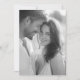 Este convite de casamento apresenta uma fotografia em preto e branco que captura um momento íntimo entre dois indivíduos, enfatizando seus sorrisos genuínos e posturas relaxadas. O design foca na simplicidade e ressonância emocional, com iluminação suave que destaca as expressões dos sujeitos e cria um clima quente e sereno. A paleta de cores em tons de cinza realça a elegância atemporal do layout, tornando-o perfeito para casais que buscam uma estética clássica e, ainda assim, emocionante para o seu dia especial.